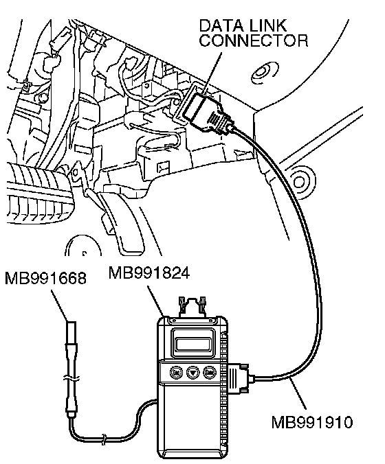 CAUTION: To prevent damage to scan tool MB991824, always turn the ignition switch to the "LOCK" (OFF) position before connecting or disconnecting scan tool MB991824.