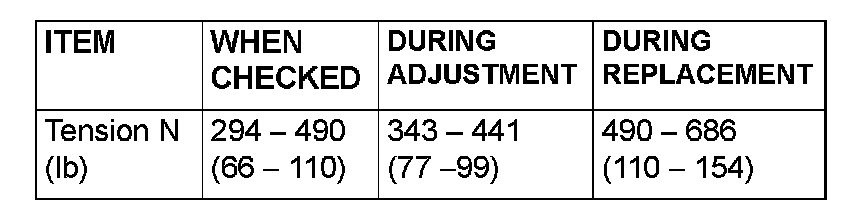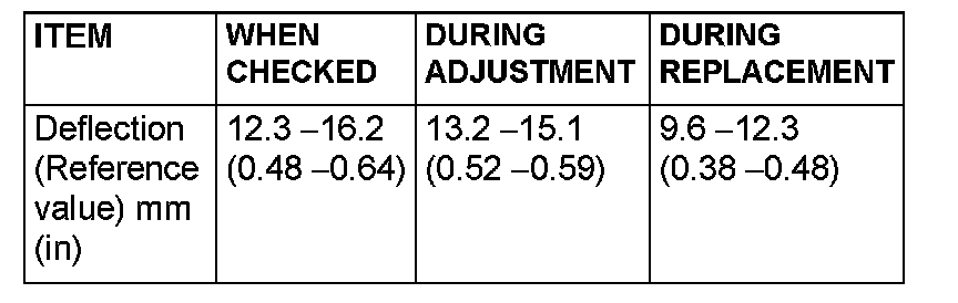 if the tension or deflection is outside the standard value, adjust by the following procedure.