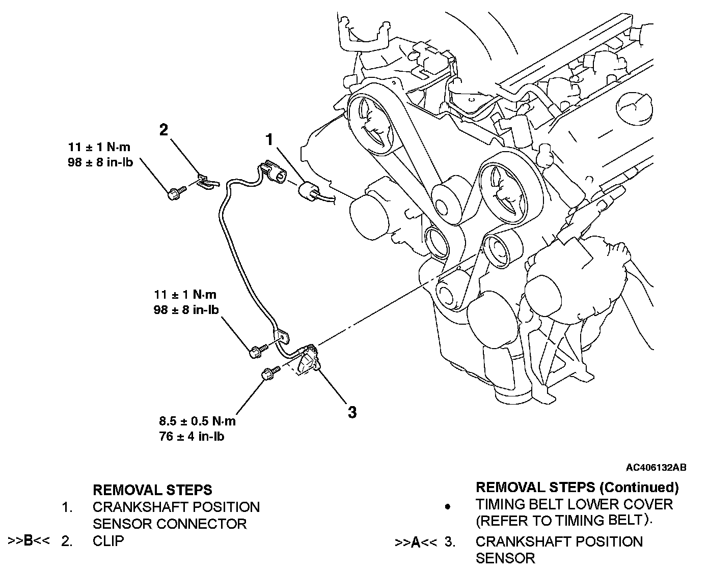 CRANKSHAFT POSITION SENSORRemoval Steps 1-3: