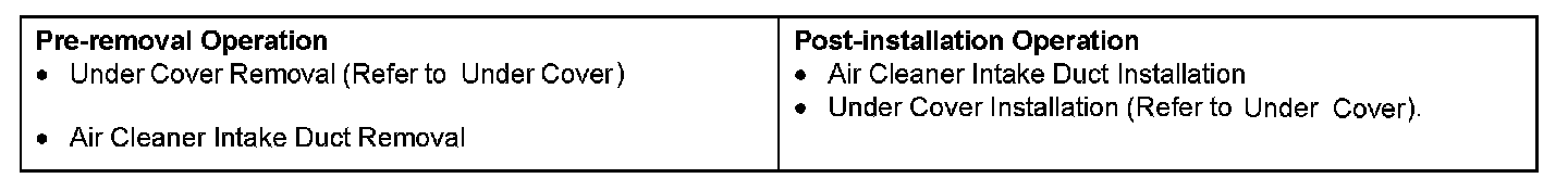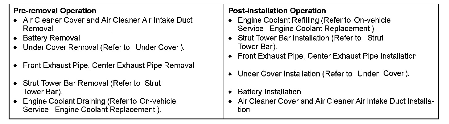 REMOVAL AND INSTALLATION <3.8L ENGINE>Pre-removal Operation And Post-Installation Operation: