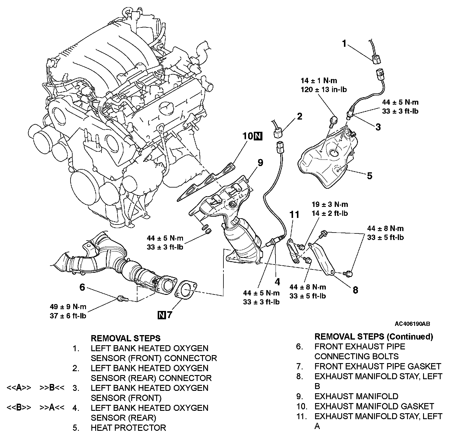 <> LEFT BANK HEATED OXYGEN SENSOR (FRONT)/RIGHT BANK HEATED OXYGEN SENSOR (FRONT) REMOVAL