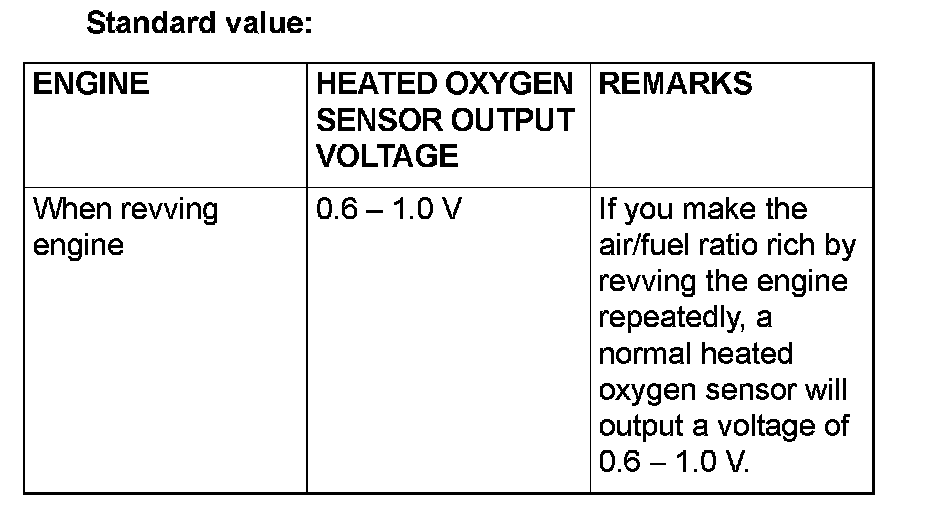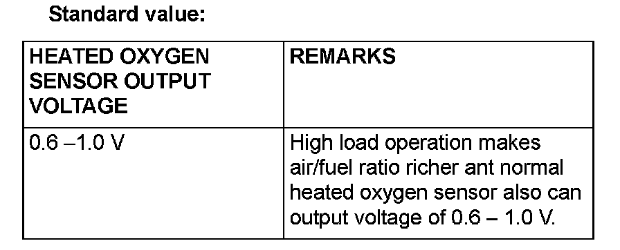 NOTE: If the sufficiently high temperature (of approximate 400 degrees C or more) is not reached although the oxygen sensor is normal, the output voltage would be possibly low although the rich air-fuel ratio.