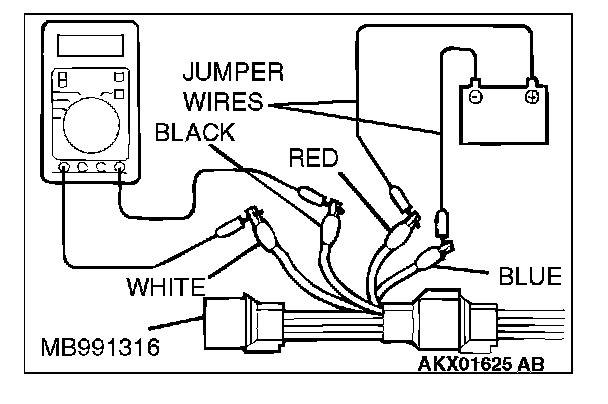 1. Disconnect the heated oxygen sensor connector and connect special tool MB991316 to the connector on the heated oxygen sensor side.