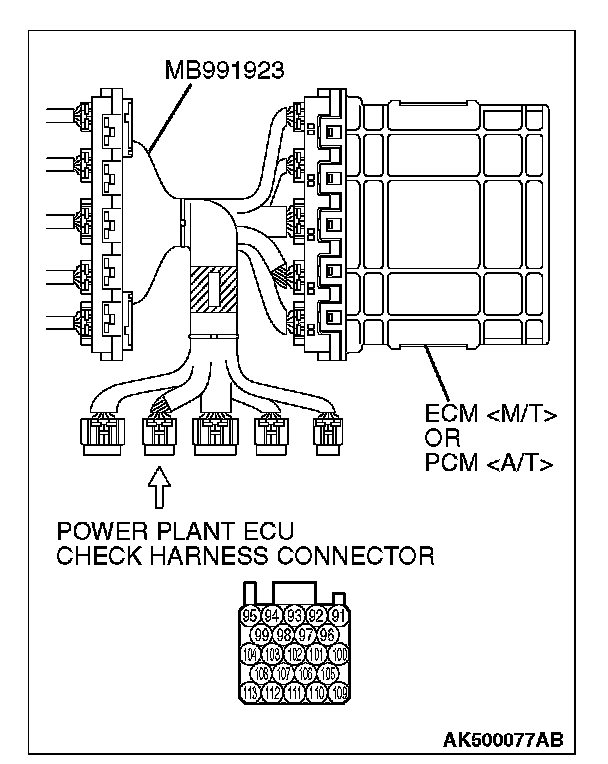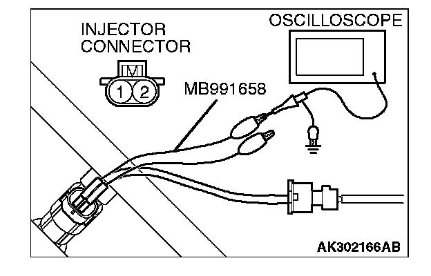 1. Disconnect the injector connector, and connect the test harness special tool (MB991658) between the separated connector. (All terminals should be connected.)