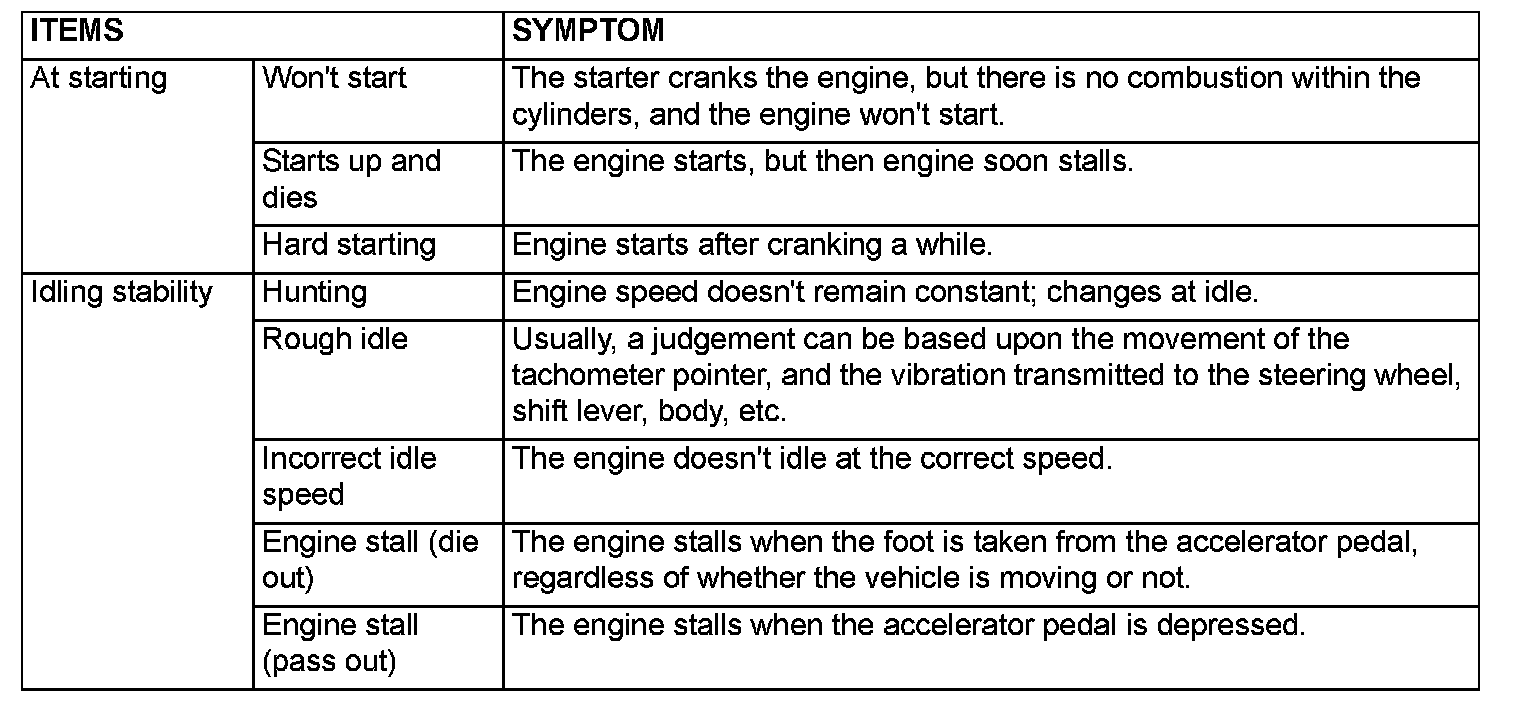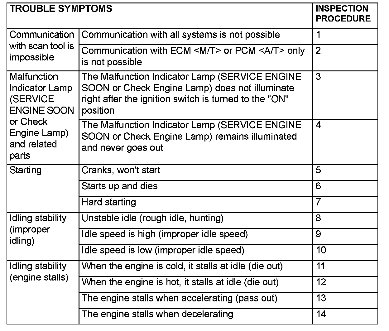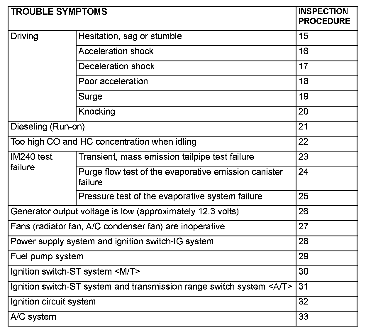 SYMPTOM CHARTInspection Chart For Trouble Symptoms Part 1: