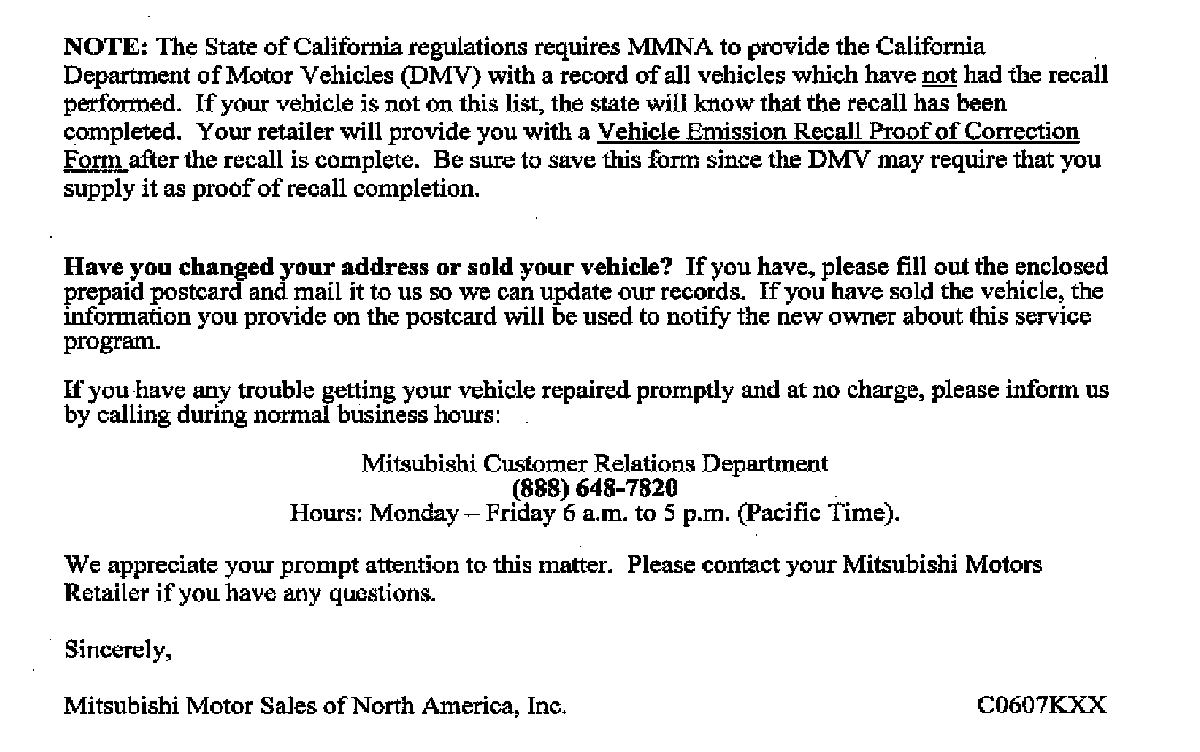 Owner Letter - California
