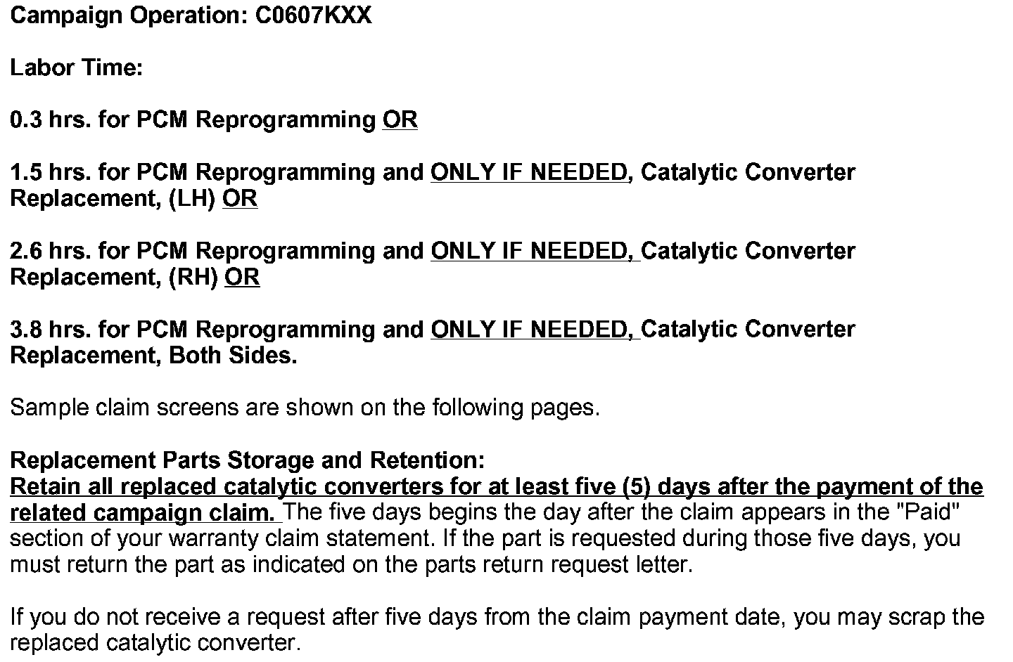 Recall - PCM Update for Catalytic Converter Overheating: Overview