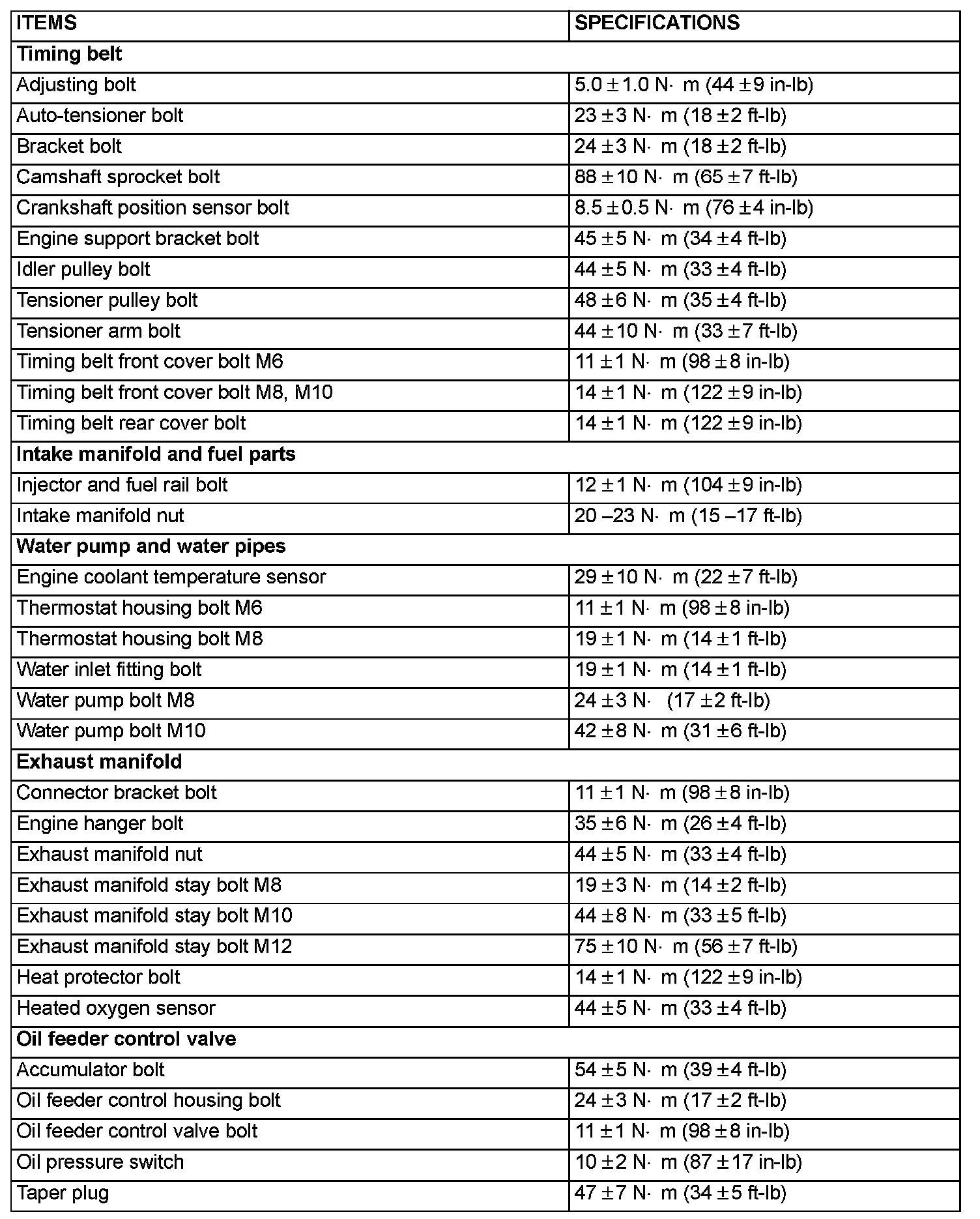 FASTENER TIGHTENING SPECIFICATIONS: