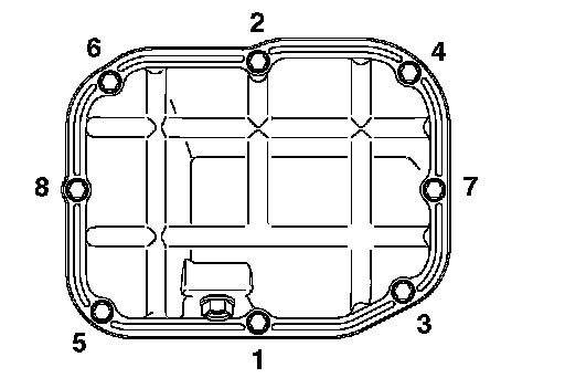 Tighten the upper oil pan bolts in the sequence shown.