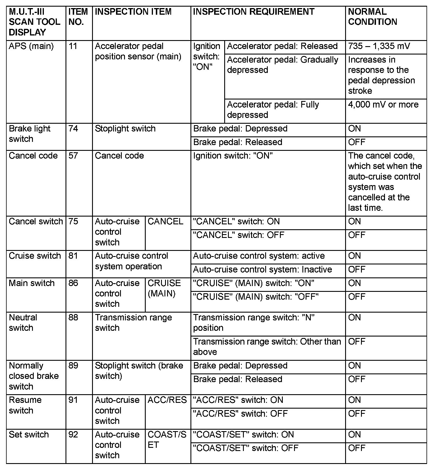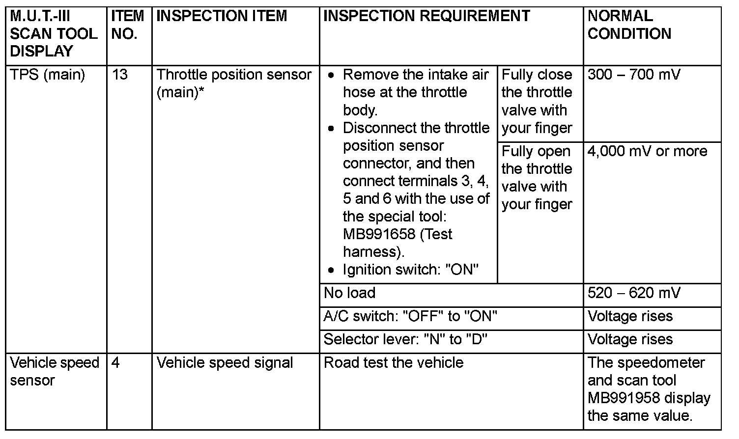NOTE: *:After the inspection is completed, disconnect the throttle position sensor connector, and then delete the diagnostic trouble code using use of scan tool MB991958.