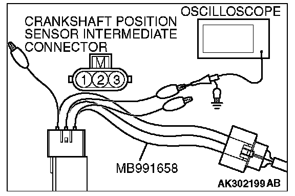 3. Disconnect the crankshaft position sensor intermediate connector, and connect the test harness special tool (MB991658) between the separated connector.