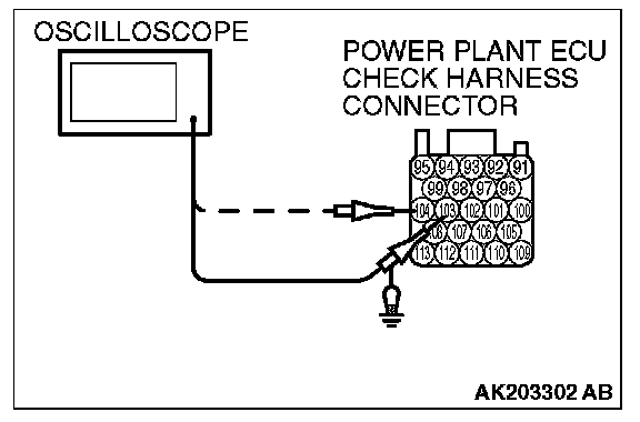 3. Connect the oscilloscope to check harness terminal No. 103. (Check the crankshaft position sensor signal wave pattern.)