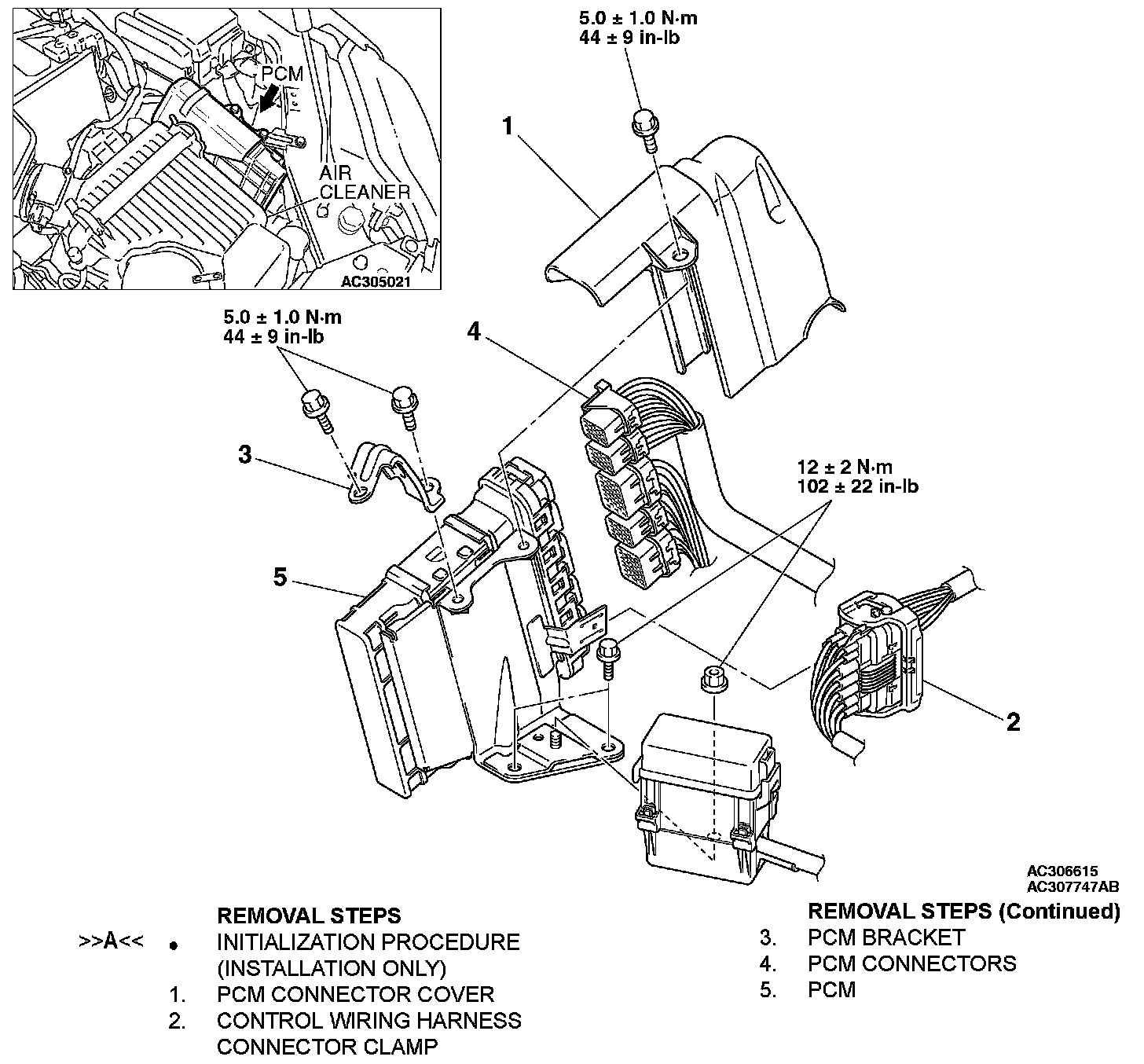 POWERTRAIN CONTROL MODULE (PCM)Removal Steps 1-5: