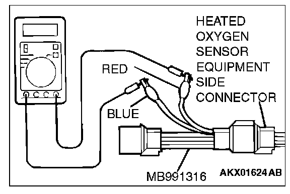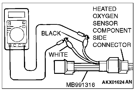 1. Disconnect the heated oxygen sensor connector and connect special tool MB991316 to the connector on the heated oxygen sensor side.