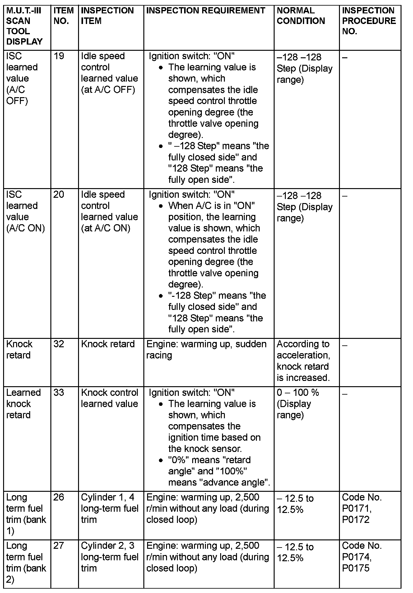 Data List Reference Table & Normal Scan Data Values