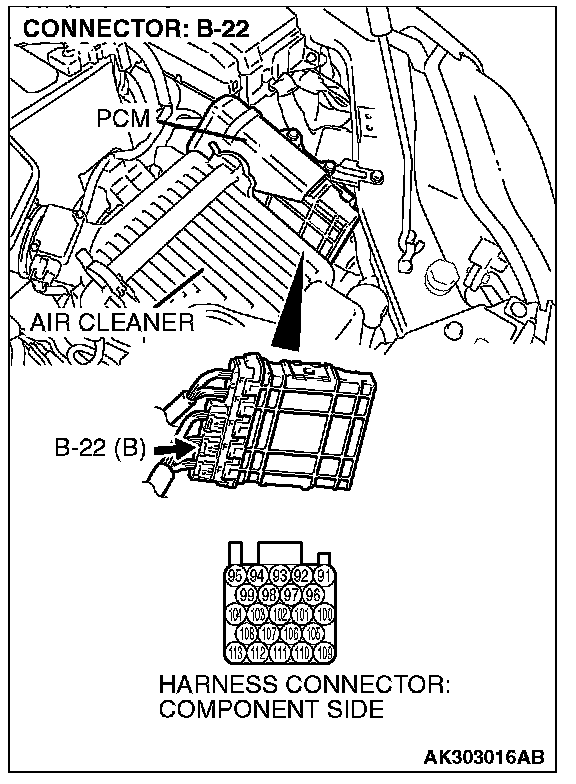 STEP 7. Measure the sensor output voltage at PCM connector B-22 by using power plant ECU check harness special tool MB991923.