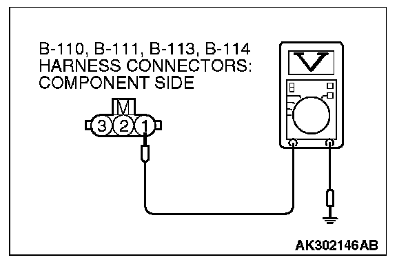 STEP 3. Measure the power supply voltage at ignition coil connectors B-101, B-102, B-117 and B-118.