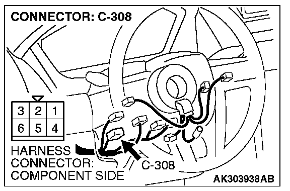 STEP 4. Check for open circuit between ignition switch connector C-308 (terminal No. 2) and ignition coil connectors B-101, B-102, B-117 and B-118 (terminal No. 1).