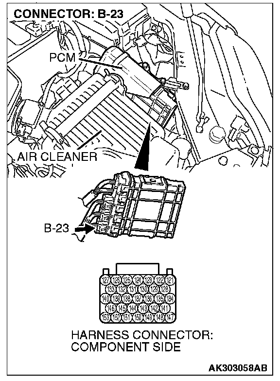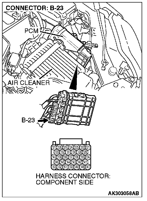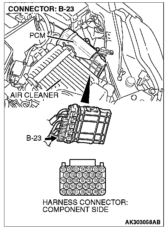 STEP 6. Check harness connector B-23 at PCM for damage.
