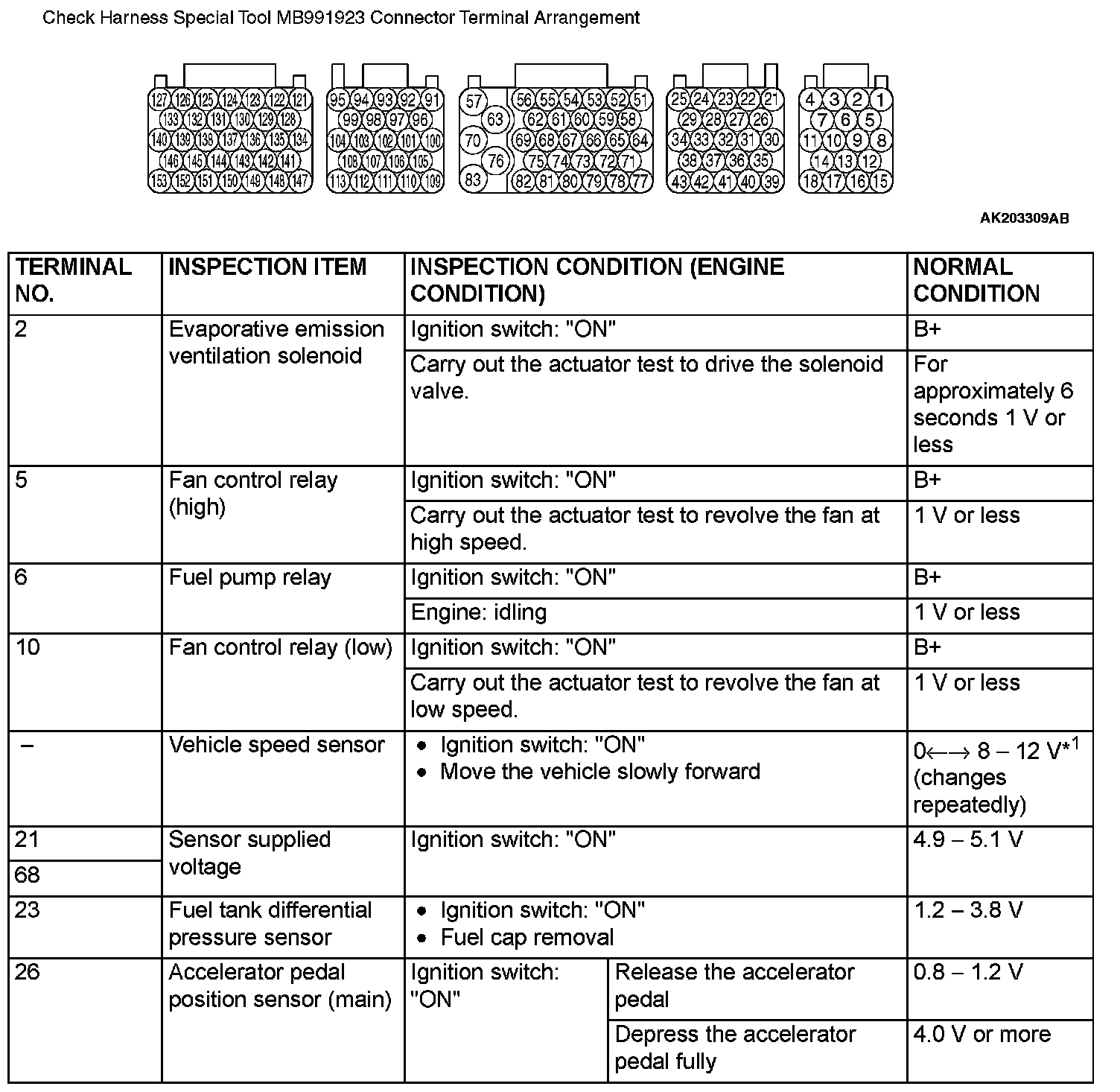 Check Harness Special Tool MB991923 Connector Terminal Arrangement Part 5: