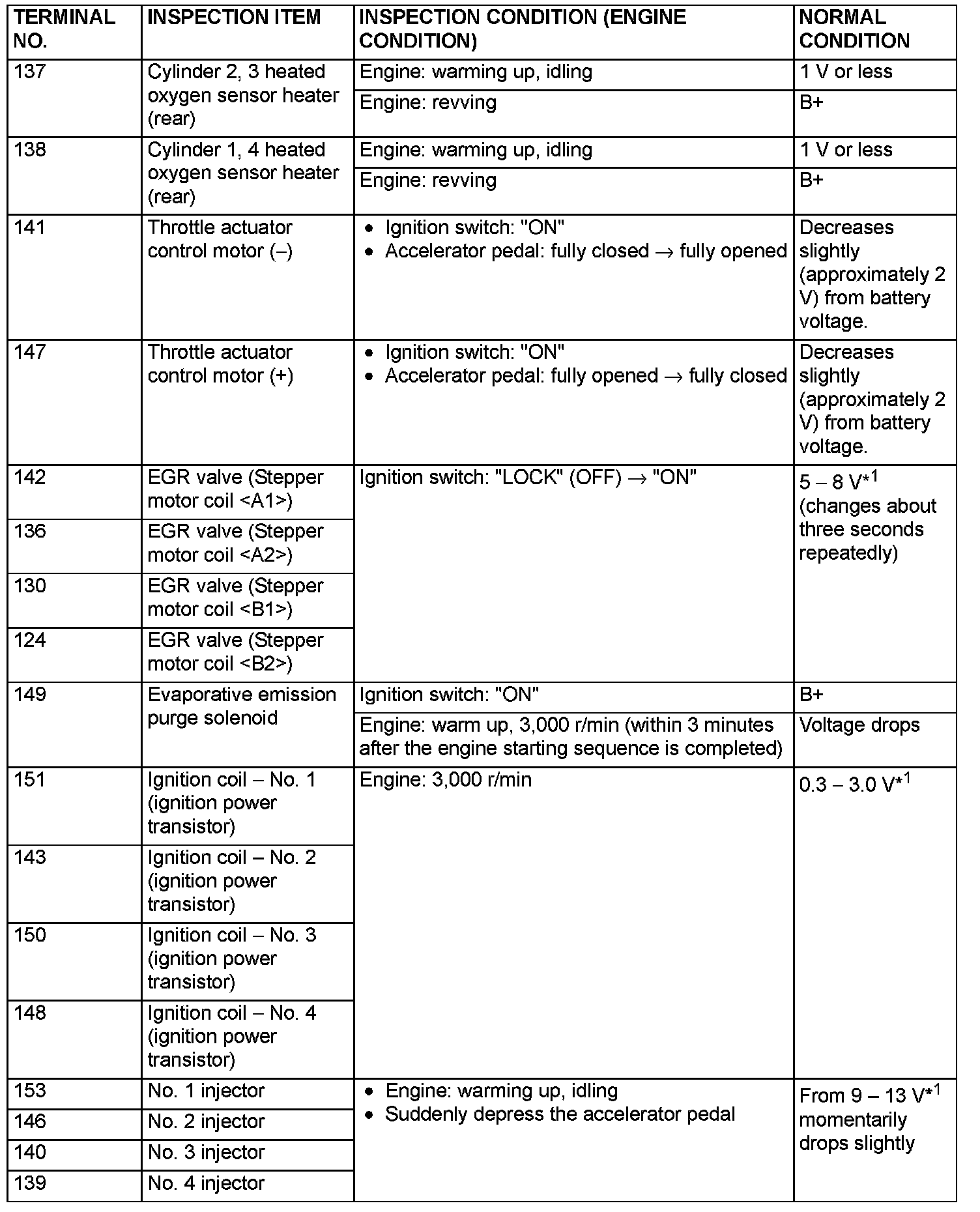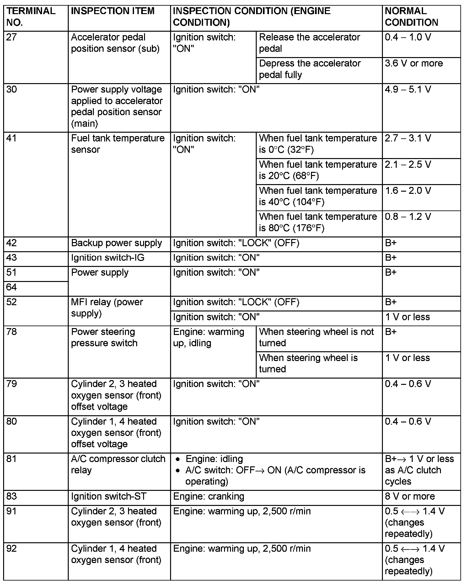 TERMINAL VOLTAGE CHECK CHART