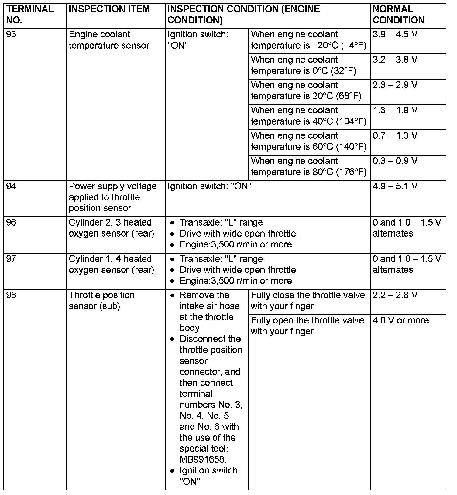 Check Harness Special Tool MB991923 Connector Terminal Arrangement Part 4: