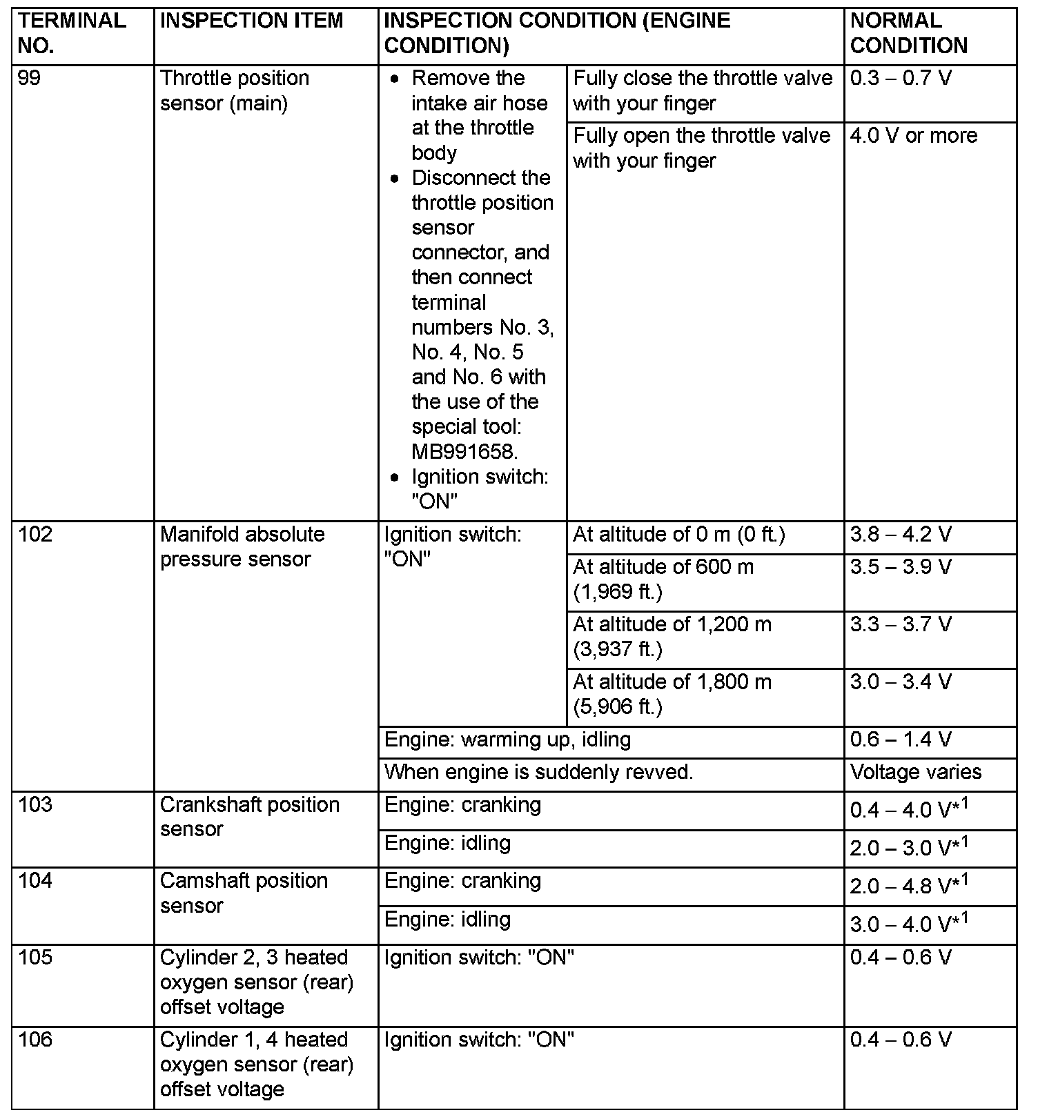 Check Harness Special Tool MB991923 Connector Terminal Arrangement Part 1: