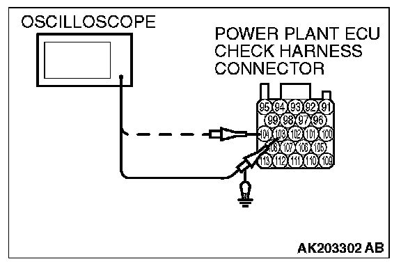 3. Connect the oscilloscope to check harness terminal No. 103. (Check the crankshaft position sensor signal wave pattern.)