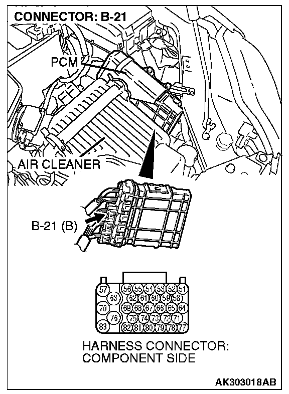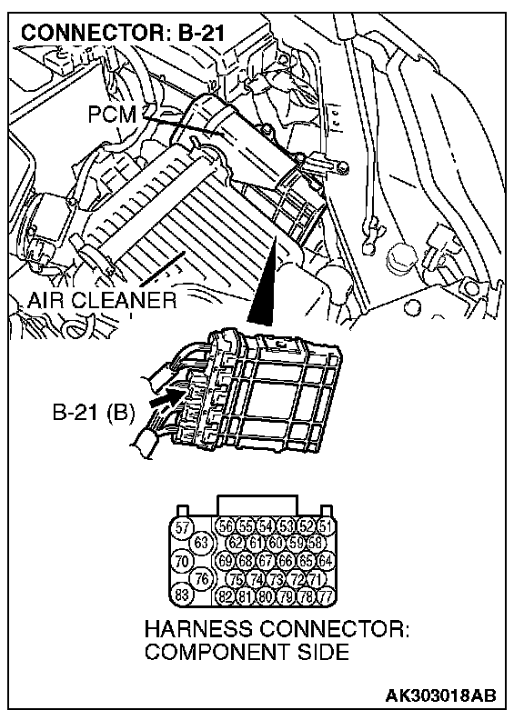 STEP 1. Check harness connector B-21 at PCM for damage.