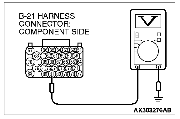 1. Disconnect the connectors B-21 and measure at the harness side.