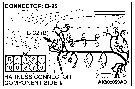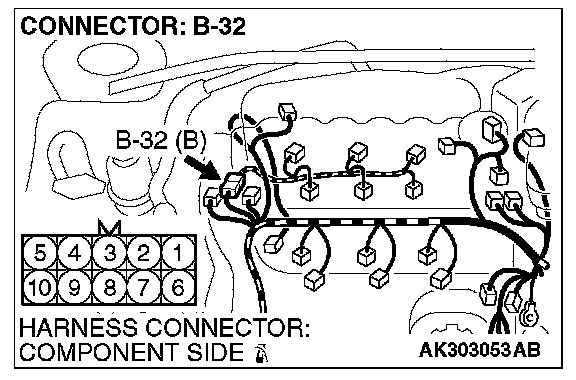 STEP 12. Check harness connector B-32 at intermediate connector for damage.