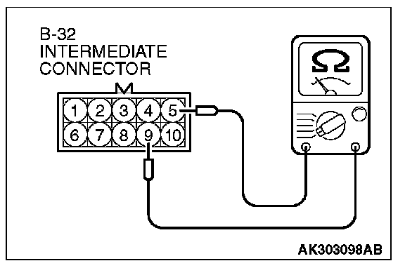 STEP 9. Check the right bank injector resistance at intermediate connector B-32.