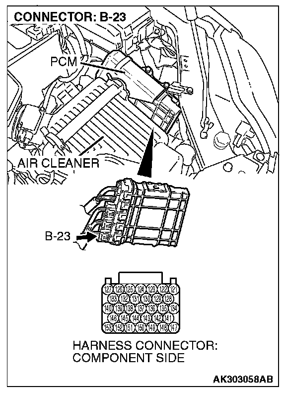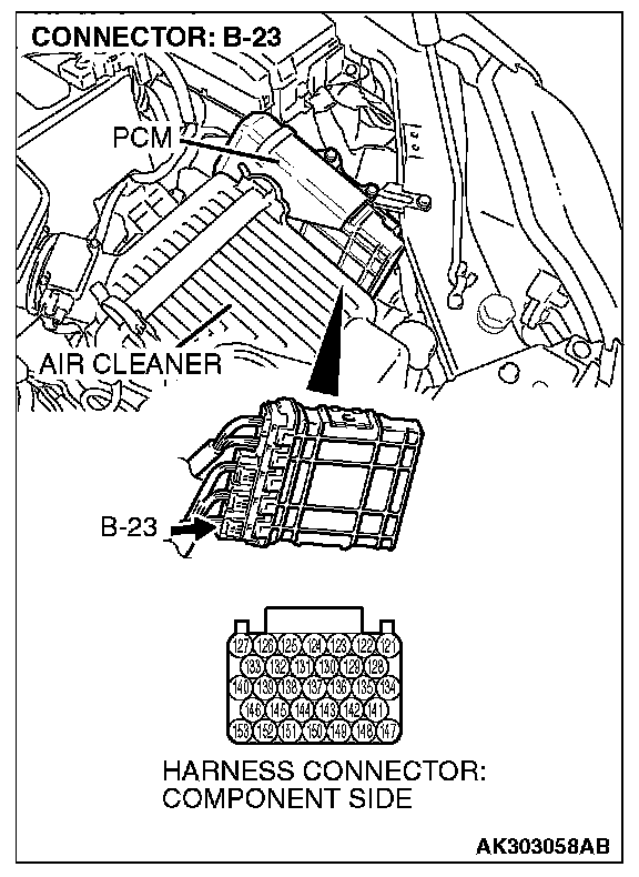 STEP 14. Check harness connector B-23 at PCM for damage.