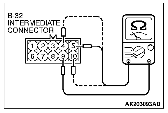 STEP 9. Check the right bank injector resistance at intermediate connector B-32.