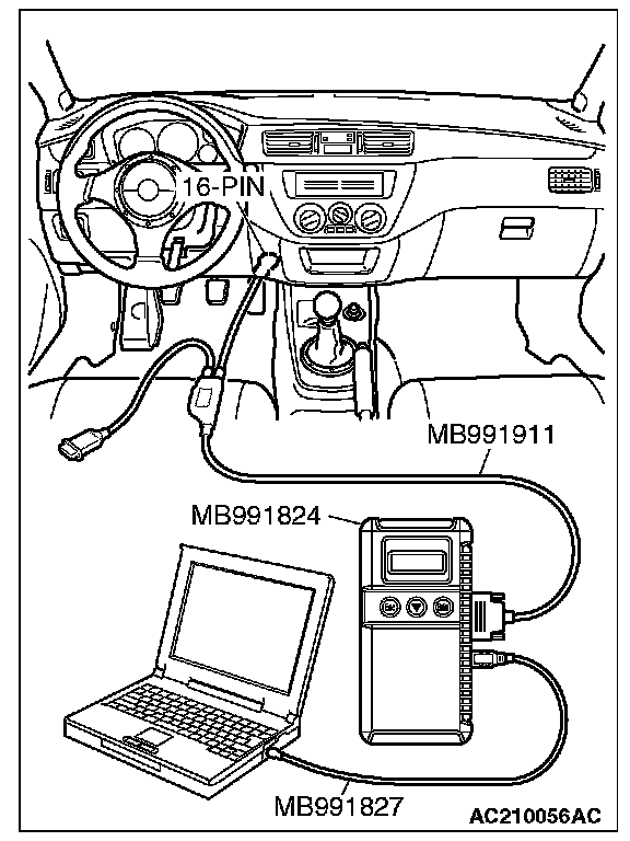 1. Connect scan tool MB991958 to the 16-pin data link connector.
