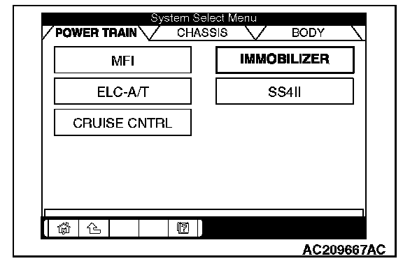 5. Choose "IMMOBILIZER" from the "POWER TRAIN" tab.
