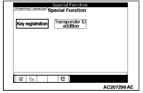 7. Choose "Key registration" from "Special Function" screen.