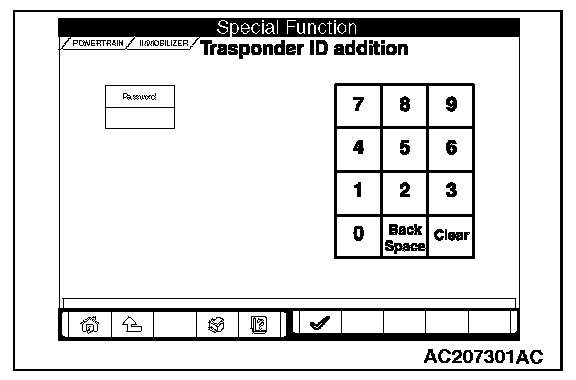 5. Input the password on the "Transponder ID addition" screen, and then click the check mark icon.