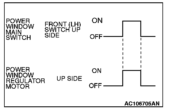 When the front (LH) switch on the power window main switch is pulled up, the system energizes its respective power window regulator motor, and then the driver's window glass rises.