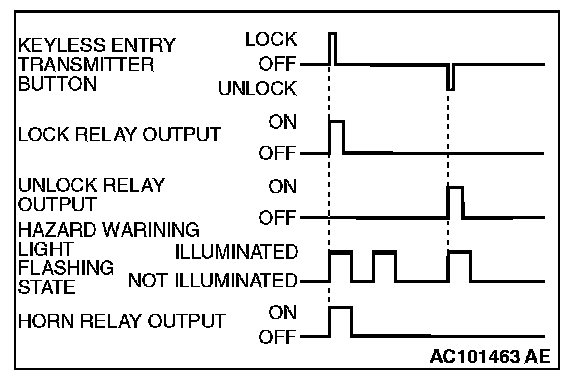 NOTE: Enabling/disabling the hazard warning light flashing, the horn sounding in accordance with the keyless entry transmitter switch operation.