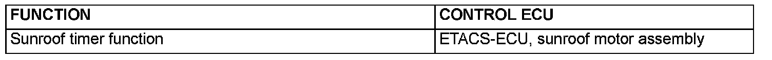 The ETACS-ECU enables opening and closing of the sunroof for 30 seconds after the ignition is switched off. During this timed operation, if the driver's door is opened, the sunroof timer function is deactivated from that moment. As for the sunroof functions, refer to Sunroof.