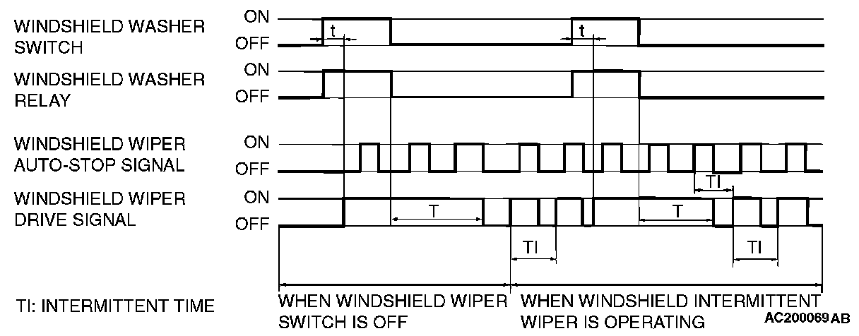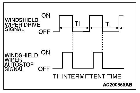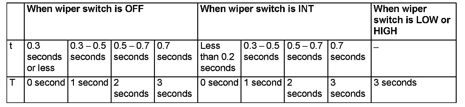 NOTE: The wiper drive signal output time varies according to the conditions. Refer to the table for details.