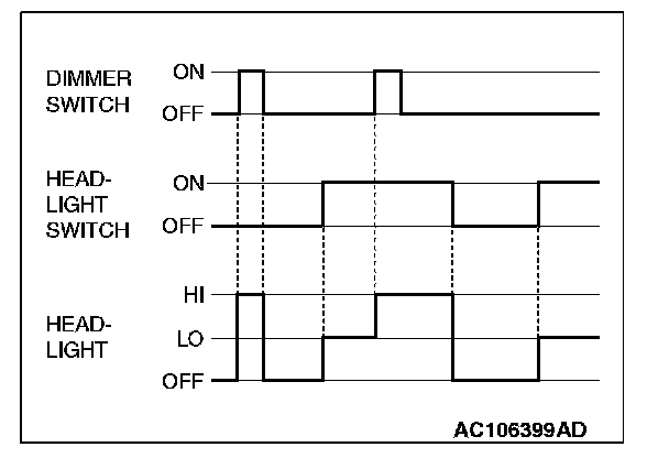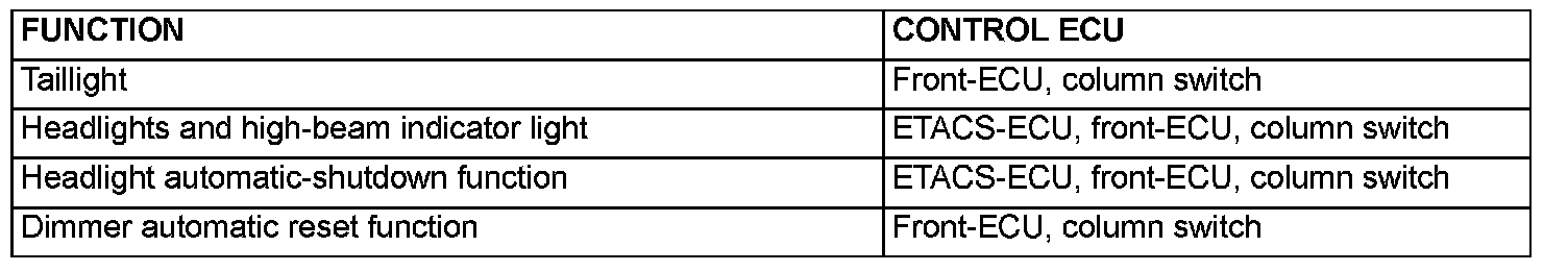 NOTE: This item only considers the headlight light up function and doesn't take into consideration the other functions. In actual driving, the headlights may be turned off due to the headlight automatic shut-down function. For the details of the headlight automatic shut-down function, refer to its Section.