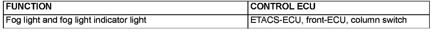 The following ECUs affect the functions and control of the fog lights and fog light indicator light.