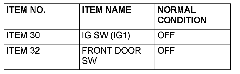 Q: Are normal conditions displayed for the "IG SW (IG1)" and "FRONT DOOR SW"?
