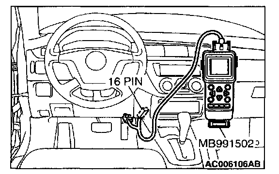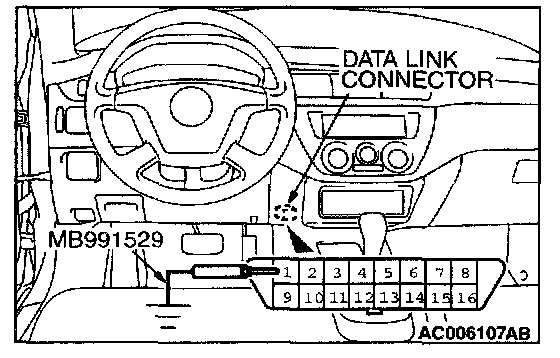 3. Connect scan tool MB991502 to the data link connector terminal (1).