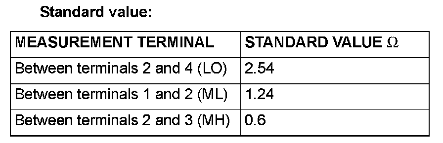 Use an ohmmeter to measure the resistance between the terminals. Check that the measured value is at the standard value.