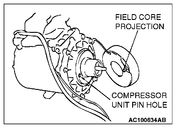 Line up the pin hole on the compressor unit with the field core projection and attach.
