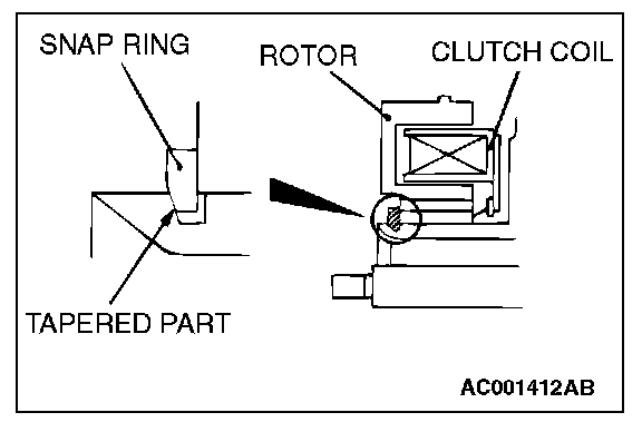 Using snap ring pliers, fit the snap ring so that the snap ring's tapered part is on the outside.