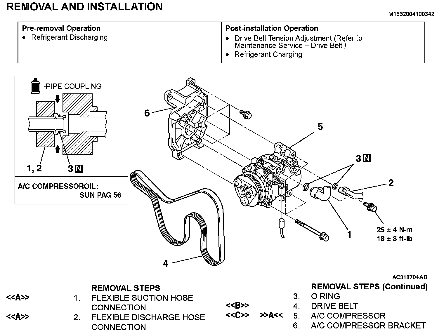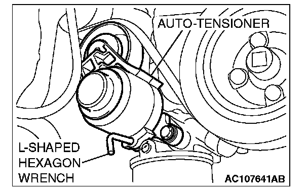 The following operations will be needed due to the serpentine drive system with the drive belt auto-tensioner.